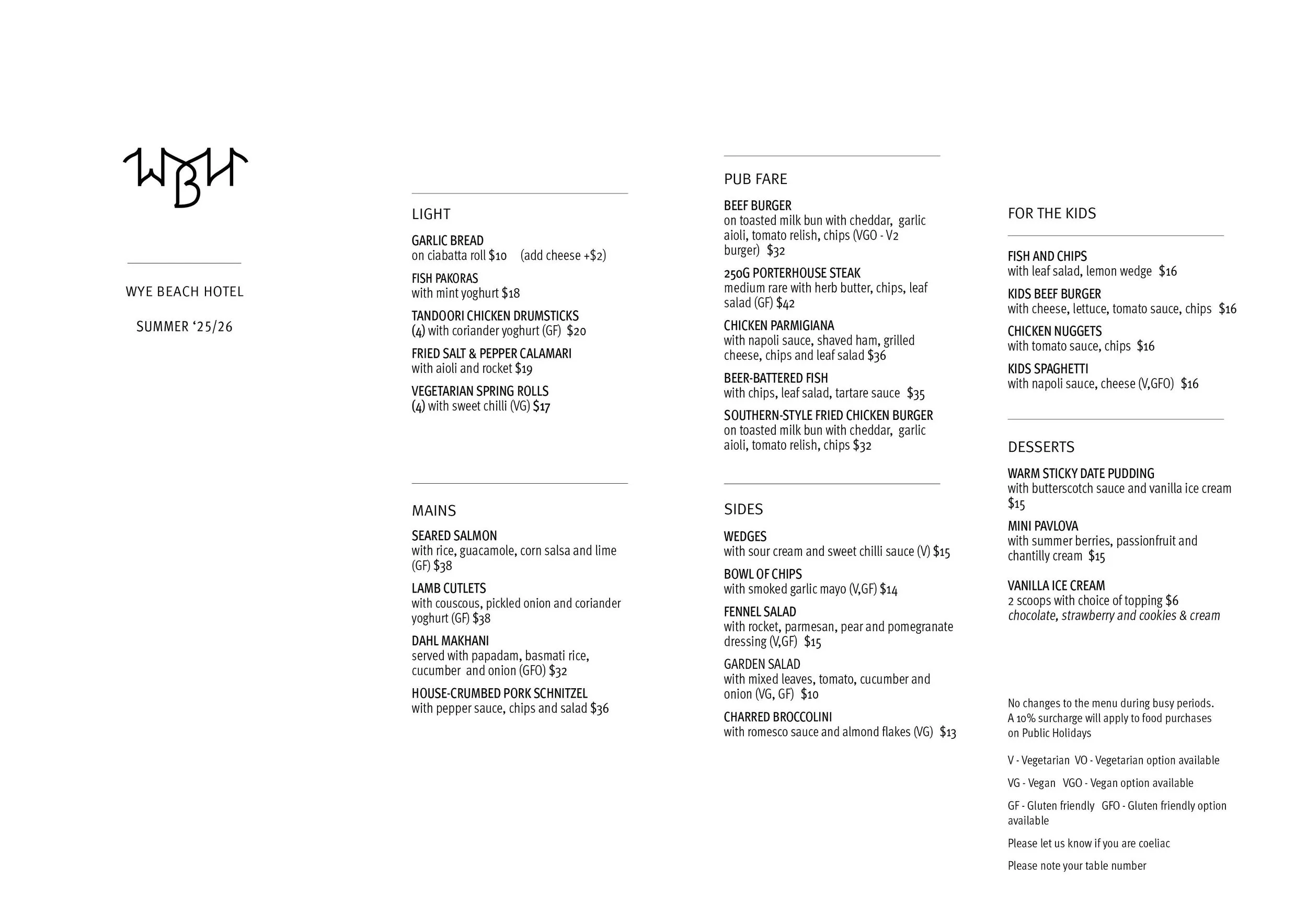 Large groups - we don’t accept bookings regardless of group size. For groups of more than 30 people, please email us so we can advise of best arrival time. info@wyebeachhotel.com.au